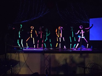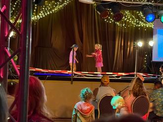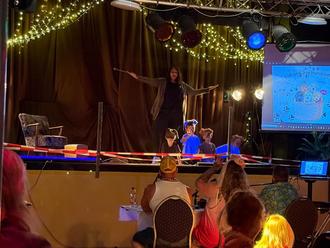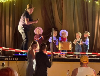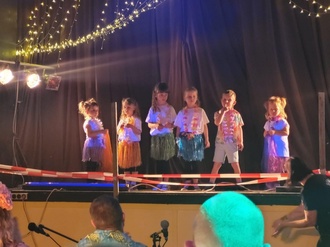 Die Kinder suchten zu Beginn des Sommers ihre Darbietungen selbst aus, kreierten und übten fleißig für ihre Showeinlagen. Mit viel Eifer und Organisation wurden Kostüme besorgt, gestaltet und gebastelt. Es entstand eine unvergessliche und wunderbare Talentshow. Dazu benötigten wir auch eine entsprechende Location, welche in der ehemaligen Diskothek bei Familie Bieschke/ Seidel in Großkayna stattfand. Nach einer übungsreichen Zeit, kam der ersehnte Tag. Alle waren aufgeregt und fieberten den Beginn der Show entgegen. Unsere Moderatoren Nicole und Jake eröffneten die Show und stellten die Jury vor. Jetzt konnten die Kinder ihre eigenen Ideen und Fähigkeiten zeigen. Es traten auf: die Flossenbeat-Fischis mit Ben, Alea, Emil, Theodor und Nina (Musikanten mit Instrumenten), die Mondmelodien als lustige Einlage mit Dajana und Sandy, die Akrobatik- Darbietung mit unserem Springsternchen Elina, eine Vaiana Improvisation mit den Mädels Olivia und Kate, das Duell Jungs gegen Mädchen mit Jamie und Luisa, das Bodyworkout mit unserer kleinen Lieselotte, Lisa und ihre Hundewelpen Aurelian, Wystan-Friedrich, Julius & Joyce, unser Michael Jackson Double Lenny, die Iko Iko Dancegroup mit Oskar, Ella, Aria, Samantha, Pia und Emily, die rockigen Tanznixen Luna, Lucy Ella und Samira, Hufi und Herzchens Hobby-Horsing mit Lina sowie die Tornado-Tintenfische mit ihrer Breakdance-Einlage durch Tim, Vito und Oliver. Die Erzieherinnen und Erzieher durften selbstverständlich nicht fehlen und schlossen die Show mit einem Lichtertanz ab. Nach unseren Darbietungen bot Familie Bieschke/ Seidel ein paar leckere Speisen an, welche rege genutzt wurden.