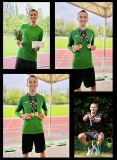 Die Deutschen Meisterschaften Masters in Gotha am 23.8. waren bis jetzt seine größten Erfolge. Auch wenn es schon eine goldene Medaille im Team gab, eine einzelne ist dann doch schon etwas Besonderes. Ein weiterer Aspekt sind ja auch Verletzungen die man sich ja mal schnell währen eines Wettkampfes oder Training zuziehen kann und eine Wettkampfteilnahme unmöglich machen. Doch dieses Jahr hat alles gepasst, schon bei den LM hat Max gezeigt, dass die Formkurve nach oben zeigt. Zu den Masters in Gotha startete er im Drei – und Hochsprung. Im Dreisprung wurde er mit 12.11m DM Masters und im Hochsprung mit 1.75 m wurde er Vizemeister.