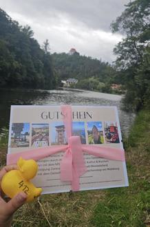 Am 16. Oktober besuchten uns liebe Gäste aus dem thüringischen Krölpa – die Gewinner des Entenrennens beim 24. Ziegenrücker Promenadenfest. Tinas und Christians Ente mit der Startnummer 412 ging als erste durchs Ziel.