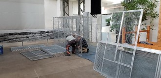 Bereits am 30. Oktober wurden die benötigten Volierenteile aus unserem Lager in die Pfännerhall zum sofortigen Aufbau gebracht.