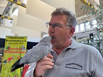 Eine Attraktion für die Besucher war unser „Scholli“ mit seinem zahmen Graupapagei