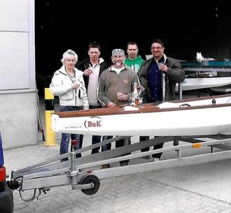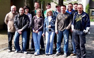 Das erste Drachenboot wird abgeholt - Die Gründungsmitglieder der Abteilung Drachenboot (es fehlt Steffi Perlak)