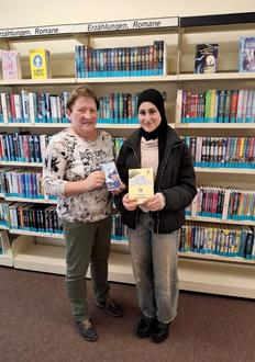 Im Oktober konnte die Leiterin der Stadtbibliothek Salsabil Baaj einen Thalia-Gutschein überreichen.