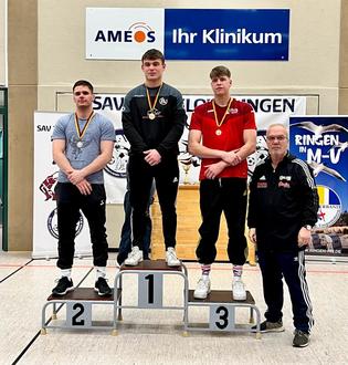 Der SAV Torgelow wurde mit der Durchführung der diesjährigen Norddeutschen Einzelmeisterschaften der Männer beauftragt. Topfit präsentierten sich Emil Thiele vom SV Braunsbedra bei dieser Meisterschaft. Das im Vorfeld absolvierte 5-tägige Trainingslager in Steinbrunn/ Österreich, war eine sehr gute WK- Vorbereitung für den Geiseltaler. Eindrucksvoll startete Emil in der Gewichtsklasse bis 97 kg im griechisch-römischen Stil in das Turnier. Er besiegte in seinem Auftaktkampf seinen Gegner aus Greifswald vorzeitig mit 10 : 0-Punkten durch technische Überlegenheit. Im Halbfinalkampf traf er auf Niklas Richter aus Frankfurt/ Oder. Aber auch in diesem Duell dominierte Emil mit 11 : 0-Punkten, da er konsequent die taktischen Vorgaben im Kampf umsetzte. Im Finalkampf stand Emil dem Sportler Marten Scheel aus Warnemünde gegenüber. In diesem Fight siegte der Sportschüler wieder vorzeitig durch technische Überlegenheit mit 10 : 0-Punkten.