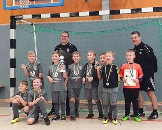 Am 22. Januar folgten die F-Jugend der JSG Geiseltal der Einladung des TSV Eintracht Lützen. Im ersten Turnierspiel unterlagen wir etwas unglücklich dem SV Rot-Weiß Weißenfels mit 0 : 1. Im nächsten Spiel wachte unsere Mannschaft auf, stand hinten sicher und erzielte vorn die notwendigen Tore zum Endstand von 2 : 0 gegen SG Teuchern/Nessa. Auch im dritten Spiel behielten wir gegen den Gastgeber mit 2 : 0 die Oberhand. Im vorletzten Spiel gegen JSV Weißenfels mussten wir uns mit einem 0 : 0 begnügen. Zum Abschluss benötigten wir noch einen Punkt gegen die SG Leipzig-Bienitz, dies gelang mit einem 0 : 0 ziemlich souverän. Große Freude herrschte dann bei der Siegerehrung als die Jungs den Siegerpokal in Empfang nehmen durften. Ein persönliches Highlight gab es für Finn Bente, denn er wurde als bester Torschütze ausgezeichnet, nach dem er sich gegen einen torgleichen Spieler im 9-m-Duell durchsetzen konnte.