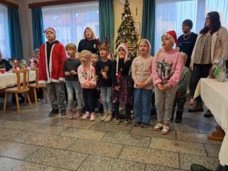Um uns das Warten zu versüßen, gab es Weihnachtsschmaus und Weihnachtslieder. Uns besuchten die Kinder aus der Kita „Seepferdchen“ Großkayna mit einem schönen Weihnachtsprogramm. Süß die kleinen Mäuse als Wichtel verkleidet. Es ist immer wieder herzerwärmend, wie die Mäuse so singen.