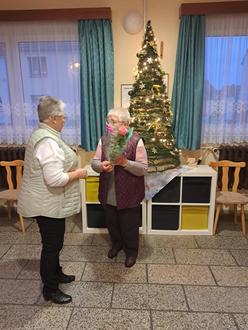 Dann gab es Kaffee und Kuchen von Andrea. Ein Zimtapfelkuchen und Stolle rundeten den Rahmen ab. Die Ehrung der Geburtstagskinder vom 13.11. bis 10.12.2024 durfte auch nicht fehlen. Die Jubilarin Marlis Voigt (85) wurde ebenfalls mit einem Ständchen geehrt und erhielt ein Präsent von Irene Nöhring.