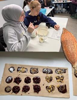 Neben Informationsvideos zur Geschichte der Kakaofrucht lernten wir etwas zur Produktion von Schokolade kennen. Wir hatten viel Spaß daran, die Schokolade selbst herzustellen, zu dekorieren und natürlich zu essen.