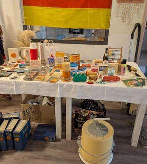 Wir bauten in der Tagespflege ein kleines DDR-Museum auf, dies weckte viele Erinnerungen und sorgte für reichlich Gesprächsstoff. Natürlich wurde auch die alte Schwarzenberger Wäscheschleuder getestet. Ein alter Stern-Recorder spielte typische Musik und regte zum Mitsingen an.