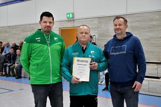 Auch die Friesenkicker präsentierten sich stark. Sie erreichten das Halbfinale, mussten sich dort jedoch knapp mit 0:1 geschlagen geben. Im Spiel um Platz drei fehlte ihnen das nötige Glück, sodass sie sich am Ende mit Rang vier begnügen mussten. Bester Torschütze wurde mit 7 Toren Andreas Farchmin vom SV Braunsbedra und Bester Torhüter wurde Patrick Lenzen vom TSV Leuna. Das Turnier erfreute sich großer Beliebtheit: Zahlreiche Zuschauer feuerten die Mannschaften an, und die Atmosphäre war ausgelassen. Mit einem reibungslosen Ablauf und fairen Spielen zeigte sich die Turnierleitung äußerst zufrieden. Es war wieder ein tolles Turnier mit viel Begeisterung. Die Mannschaften haben hochklassigen Fußball geboten, und die Zuschauer haben für eine großartige Stimmung gesorgt, resümierte Michael Hofmann, der stellvertretende Friesenvorsitzende. Mit dem 34. Köstritzer Cup hat sich das Turnier einmal mehr als guter Abschluss der Hallensaison bewiesen. Die Vorfreude auf die nächste Auflage ist bereits groß. Zudem kam unserem Ehrenmitglied Bernd Leopold eine weitere Ehrung zu Teil. Der Vizepräsident des Fußball-Landesverbandes Sachsen-Anhalts Jens Franke zeichnete „Leo“ mit der FSA-Ehrennadel in Silber aus.