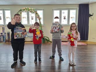 Mit dem Schulfasching, am Ende dieses Halbjahres, läuteten wir den Beginn der diesjährigen Winterferien im Hort ein. Hier standen wieder jede Menge Spaß und eine bunte Mischung aus kreativen Angeboten auf dem Plan. Die Woche war voller aufregender Aktivitäten, bei denen die Kinder viel Neues ausprobierten und viele Erinnerungen sammelten. Bei winterlichen Bastelangeboten konnten sie ihrer Phantasie freien Lauf lassen und winterlichen Dekorationen aus verschiedenen Materialien gestalten. Die Kinder hatten viel Freude an ihren Kunstwerken, die sie mit nach Hause nehmen konnten oder den Hort damit verschönerten. Im Rahmen eines Projekts vom Seumeverein Weißenfels schauten sich die Kinder verschiedene alte Spiele aus früheren Zeiten an. Natürlich konnten diese auch ausprobiert werden. Erstaunt stellten die Kinder fest, dass aus den wenigen Materialien, die damals zur Verfügung standen, solch tolle Spiele entstanden sind. Manch einem wurde bewusst, dass es auch Freude machen kann, offline zu spielen und sich nicht immer nur auf digitale Medien zu verlassen. Einen interessanten und abwechslungsreichen Ferientag verbrachten die Ferienkinder in der Bücherei. Dort hatten sie die Gelegenheit neue Spiele zu entdecken und diese in kleinen Gruppen auszuprobieren. Der Besuch der Bücherei war nicht nur lehrreich, sondern auch eine Gelegenheit, die Freude am Lesen und Spielen zu fördern. Ein großes Dankeschön an Frau Wust und ihr Team für diesen schönen Vormittag. Ein weiteres Highlight der Ferien war eine aufregende Schulhausrallye. Hier mussten die Kinder Zahlen, mit darauf stehenden Wörtern, im Schulhaus finden. Die Wörter standen für Aufgaben, die von den Kindern zu erledigen waren. Hier kam es auf Allgemeinwissen, Konzentration, Kreativität aber auch Schnelligkeit und eine Portion Glück beim Würfeln an. Ziel war es als Erster, mit den gewürfelten Zahlen, das Spiel zu beenden. Am Ende wartete auf jeden Spielteilnehmer ein kleiner Preis, egal ob man als Erster, Zweiter oder Letzter im Ziel angekommen war, Hauptsache man hatte Spaß dabei. Den letzten Ferientag versüßten wir uns mit leckerem frischgebackenem Kuchen. In kürzester Zeit wurde er von allen ganz schnell verputzt. Ein Lob an die fleißigen Backhelfer. Da Frau Holle fleißig ihre Betten ausgeschüttelt hatte, konnten wir seit langer Zeit die weiße Pracht in unseren Ferien sehr genießen. Mit den Porutschern unter dem Arm machten wir uns mehrmals auf den Weg in den Park. Auf den Hügeln konnten sich alle so richtig austoben und hatten einen Riesengaudi dabei. Es wurde gelacht, gerutscht und der ein oder andere Schneeball flog auch umher. Die Winterferien waren für die Hortkinder eine abwechslungsreiche und aufregende Zeit. Sie konnten ihre Kreativität ausleben, neue Dinge entdecken und viel zusammen unternehmen. Es war eine schöne Gelegenheit sich in der kalten Jahreszeit zu bewegen, zu spielen und dabei das Zusammensein zu genießen.