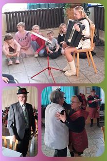 Bevor es mit Kaffeetrinken losging, erfreute uns Katharina vom Heimatverein mit einer Überraschung. Die Kinder aus der Kita „Seepferdchen“ kamen mit einem Karnevalsprogramm, was alle sehr erfreute - Tanzgruppe, Rapper, Akkordeonspielerin und Sänger. Das Lied „Herzbeben“ hat alle sehr berührt. Hartmut Schunke war so entzückt, dass er keine Worte fand. Mit einem Riesenapplaus und Staubfrei verließen die Zwerge den Saal.