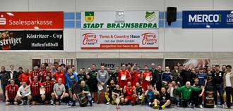 Frankleben.Traditionell am letzten Freitag im Februar verwandelte sich die Harry-Kaßler-Sporthalle in Frankleben wieder in eine Fußballarena: Zum 35. Mal lud der SV Friesen Frankleben 1887 e.V. zum Köstritzer-Cup ein. Freizeitkicker, Senioren und „Alte Herren“ sorgten für einen stimmungsvollen Turniertag – insgesamt 57 Tore begeisterten die Zuschauer. Friesenchef Thomas Wasner begrüßte zahlreiche Gäste, darunter Ehrenmitglieder des Vereins, Franklebens Ortsbürgermeister Günter Küster sowie den Landtagsabgeordneten und Landratskandidaten Sven Czekalla (CDU). Ebenfalls unter den Ehrengästen war der Langeneichstädter Getränkehändler und langjährige Sportförderer Maik Patzner.