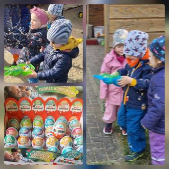 Die Kinder der Mäuschen- und Bärchengruppe möchten sich bei den Rewe Mitarbeitern Jana Ochse, Steffen Bautz und Chris Reinsch für von ihnen die gesponserten Überraschungseier bedanken.