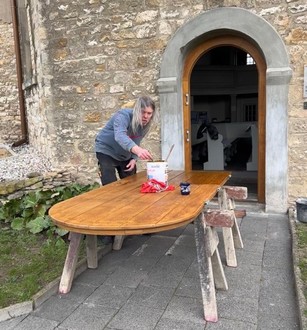 Darüber hinaus wurde die Evangelische Kirche von innen und außen gereinigt sowie die Eingangstür neu gestrichen.
