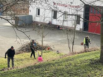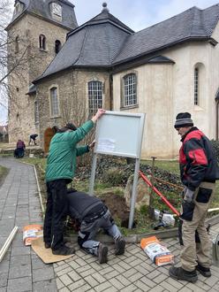 So wurde der Hang an der Feuerwehr gründlich von Gestrüpp befreit. Der Schulweg erhielt eine Pflegekur: Er wurde gekehrt, und überhängende Äste wurden zurückgeschnitten. Auch an der Ev. Kirche Krumpa gab es viel zu tun – sowohl innen als auch außen wurde sie gereinigt, eine Wand frisch gestrichen und ein neuer Schaukasten aufgestellt.