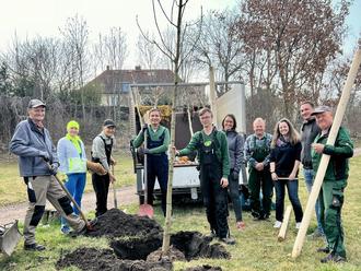 Entlang der Parkstraße wurde die bestehende Kastanienallee um eine Scharlachkastanie ergänzt – eine Baumart, die besonders beständig gegen die gefürchtete Miniermotte ist. Ein weiterer Strauch fand seinen Platz am Dreieck bei Auto Dienst Böhme, während auf dem Teichberg sowohl ein neuer Baum als auch mehrere Sträucher gesetzt wurden.