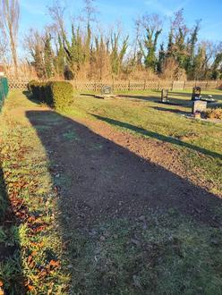 Alte Pappelstubben wurden komplett entfernt, die Löcher aufgefüllt und Rasen eingesät, um das Erscheinungsbild zu verbessern.