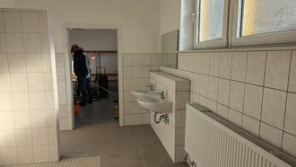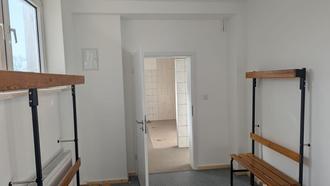Turnhalle: Das Bad und der Umkleideraum wurden komplett saniert. Der Wasserschaden wurde behoben, die Bäder wurden neu eingerichtet, teilweise wurden die Leitungen erneuert, ein neuer Putzanstrich und ein neuer Bodenbelag aufgebracht. Es ist geplant, auch die gegenüberliegenden Umkleideräume und das Bad zu sanieren.