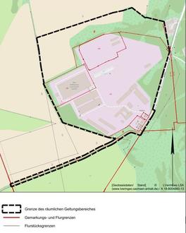 Das Plangebiet befindet sich im Süden des Ortsteils Roßbach und hat eine Größe von ca. 30 Hektar. Das Plangebiet wird im Norden, Westen und Süden durch landwirtschaftliche Flächen begrenzt. Im Osten schließt nach der Südstraße das Betriebsgelände der Kaolin- und Tonwerke Salzmünde an.