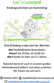 Die Stadt Braunsbedra beantragte beim Landesverwaltungsamt in Halle eine Förderung zur Anschaffung neuer Medien für Ihre Stadtbibliothek. Diese wurden im Jahr 2023 in einer Höhe von 8000 € gewährt. Die dazu notwendigen Eigenmittel stellte die Stadt bereit.