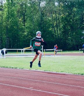 Der Startläufer Tizian stellte die Weichen schon bei Zeiten, bei diesem 4x400 Lauf.