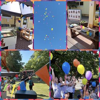 Vielleicht hat der ein oder andere einen bunten Regenbogen am Himmel beobachten können, denn wir haben bunte Luftballons steigen lassen.