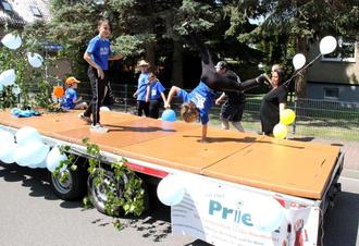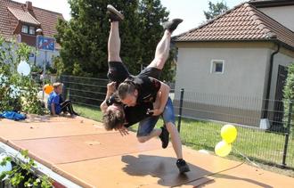Herzlichen Dank an dieser Stelle an Frank Priese aus Naumburg, der uns freundlicherweise den Hänger zur Verfügung stellte, auf dem die Kids und auch die Trainer attraktive Techniken und Turnerische Elemente zeigen konnten.