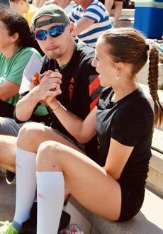 Emma Block zeigte sich in ihrer Lieblingsdisziplin, dem Hochsprung von ihrer besten Seite und steigerte ihre persönliche Bestleistung gleich dreimal und landete mit 1,44 m auf den dritten Platz. Im Speerwurf reichte es zu einem guten 2. Platz.