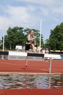 Pia Maria Becker nahm die 1500 m Hindernis unter die Füße und genoss bei diesen heißen Temperaturen gern den Sprung über (in) den Wassergraben, sie belegt zum Schluss den 3. Platz.