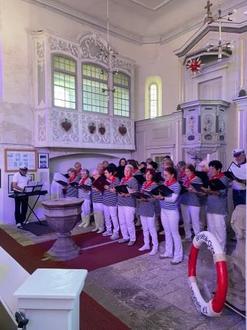 Am Dienstag, den 13. Mai 2025 lud der Geiseltal-Chor Mücheln e.V. zu einem Konzert in die Kirche ein. Zahlreiche Gäste füllten die Bänke und wurden mit einem stimmungsvollen Shanty-Programm begeistert. Die Sängerinnen und Sänger präsentierten ihr Repertoire mit spürbarer Leidenschaft. Der Funke sprang schnell über und der Kirchenraum wurde wieder von fröhlichem Gesang erfüllt.
