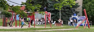 Die Zeit auf dem Spielplatz mit Hüpfburg und verschieden vorbereiteten Spielen war allerdings viel kürzer als geplant, denn ein kräftiger Wind und ein Regenschauer überraschten die fröhliche Runde.