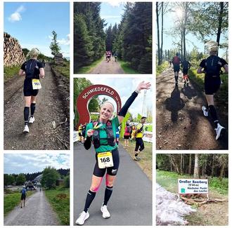 Mit einer 3-monatigen Vorbereitungszeit startete Sarah Schwarzer als eine von insgesamt 17.000 Teilnehmern beim 52. GuthsMuths-Rennsteiglauf der größte Landschaftslauf Europas. Als Läuferin des Supermarathons fiel der Startschuss 6:00 Uhr auf dem Marktplatz in Eisenach. Ziel war es, Schmiedefeld zu erreichen, wobei es hier 73,9 km und 1800 Höhenmeter zu bewältigen gab. Bereits 2021 und 2022 nahm Sarah am Marathon und 2023 am Supermarathon teil. Als eine von 1700 Läufern schaffte sie es nach 9:36:40 als 164. Frau ins Ziel. Was für eine beeindruckende Leistung.