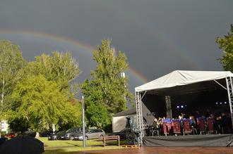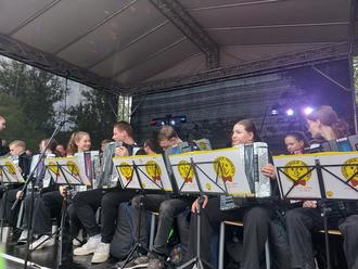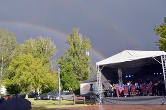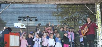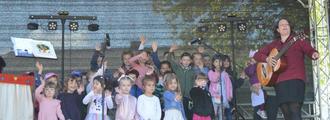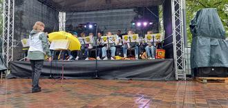 Der Sonntag stellte aufgrund der Wetterlage eine kleine Herausforderung dar. Trotz Regen und unbeständigem Wetter ließ sich die Musikschule Fröhlich nicht unterkriegen. Über 40 kleine und große Musiker reisten an und gaben ein gemeinsames Konzert auf der Bühne – sogar im Regen, aber mit viel Engagement und Freude. Das Konzert war trotz der widrigen Umstände einfach wunderbar und zeigte, wie viel Leidenschaft die Musiker mitbringen. Ein besonderes Dankeschön hier an Frau Grebe.