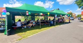 Für uns Mitglieder startete bereits am Montag eine sehr arbeitsreiche Woche. Jeden Tag wurde gewerkelt, gebaut, probiert und umgebaut, eingekauft und eingeräumt, so dass wir am Freitag pünktlich ins Festwochenende starten konnten. Mit Spannung erwarteten die Kinder ihre Disco, welche recht gut besucht war, bis es dann endlich gemeinsam mit Eltern, Omis und Opis zum Fackelumzug mit dem „Fanfarenzug Osterfeld e.V.“ Richtung Frankleben ging. Dieser wurde freundlicherweise von den Kameraden der FFW Großkayna begleitet und abgesichert. Herzlichen Dank dafür. Am Samstagmorgen war für uns das Programm auch wieder straff gestrickt. Der Dorfplatz und das Festzelt mussten gereinigt und wieder hergerichtet werden, der Frühschoppen war vorzubereiten und die Streckenposten des „Zickenmarathons“ mussten ihre Position einnehmen, da sich die ersten Läufer schon aufwärmten. Zeitgleich bereiteten die Erzieherinnen unserer Kita die Kinderanimation vor. Diese Aufgabe könnten wir Vereinsmitglieder weder personell noch in dieser Qualität meistern. Daher an dieser Stelle nochmal herzlichen Dank an das Team der KiTa Mäuseland.
