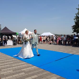 Am 9. Juli 2023 präsentierten sich zahlreiche Aussteller auf der 1. Hochzeitsmesse an der Marina Braunsbedra. Sie konnten viele Inspirationen durch Hochzeitsplaner, Trauringe und anderen passenden Schmuck, tolle Frisuren, Hochzeitstauben, Hochzeitsfloristik, Fotografen, Obstschnitzereien, Anbieter für Kinderunterhaltung, live gesungene Hochzeitsmusik bis hin zu Hochzeitsautos sammeln.