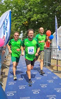 Hier trat Marcel Liebscher vom städtischen Wohnungsunternehmen Geiseltaler Wohnungsgesellschaft mbH als Schwimmer, Sven Rosenbaum stellv. Schuldirektor Lessinggrundschule Braunsbedra als Läufer und Ronny Stier Mitarbeiter der Stadt Braunsbedra als Radfahrer an den Start. Dankeschön an diese drei Herren für Ihren sportlichen Ehrgeiz und Leistungen.