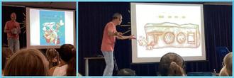 Der bekannte und beliebte Schriftsteller Jens Reinländer besucht in den Sommerferien, auf Einladung der Stadtbibliothek, wieder einmal die Ferienkinder des Hortes der Lessing-Grundschule.