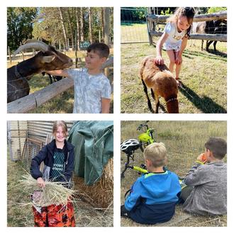 Des Weiteren besuchten wir in den Sommerferien die STEPS Jugendhilfe. Dort haben wir uns um die Tiere gekümmert, Ställe ausgemistet, Tiere gefüttert und sind mit den Ziegen im Wald wandern gegangen.