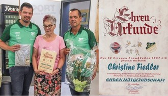 Für ihre großen Verdienste und das nicht genug zu würdigende ehrenamtliche Engagement im Verein und in der Gemeinde Frankleben wird Christine Fiedler zum Ehrenmitglied ernannt.