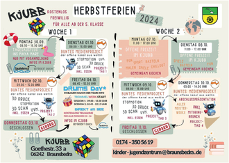 Trotz vieler neuer Angebote im Außenbereich des KJUBB, wie dem mobilen Basketball-Korb, der Tischtennisplatte und dem gemütlichen Loungebereiches am Holzschuppen, heißt es auch: „Nach den Ferien ist vor den Ferien!“ Für die kommenden schulfreien Tage im Herbst hat das KJUBB wieder ein packendes Programm auf die Beine gestellt.
