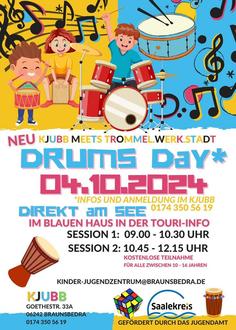 * Ein besonderes Highlightwird der DRUMS und TROMMELATTACK-Workshop sein. Wenn alle anderen schließen, machen wir so richtig Lärm. Am 04. Oktober (Freitag) findet im blauen Haus an der TOURI am See erstmals der große „DRUMS DAY“ für alle zwischen 10 – 16 Jahren statt. Hier können alle Teilnehmer sich richtig austoben – Schlagzeug, Drum, Percussion ausprobieren und das Beste: Der Workshop ist kostenlos!