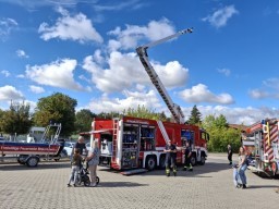 Ein besonderer Besuchermagnet war in diesem Jahr die imposante Drehleiter, mit der mutige Gäste in luftige Höhen fahren und einen einzigartigen Blick über Braunsbedra genießen konnten. Für viele war dies ein unvergessliches Erlebnis und sorgte für lange Schlangen und leuchtende Kinderaugen.