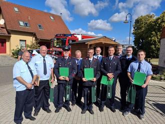 Ein besonderer Moment war die feierliche Auszeichnung mehrerer Kameraden durch den Stadtwehrleiter, den Kreisbrandmeister und den Bürgermeister. Vor den Augen der zahlreichen Gäste wurden die Verdienste der Geehrten gewürdigt – eine große Ehre für die Freiwilligen, die sich tagtäglich für die Sicherheit der Bürgerinnen und Bürger einsetzen.