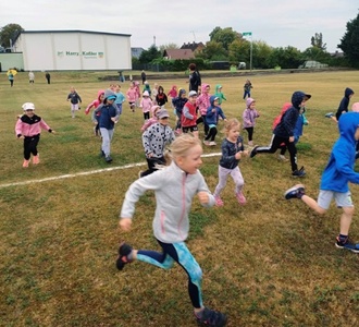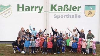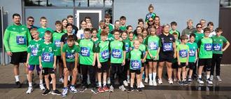 Kita-Lauf mit Gruppe und Erzieherinnen - Als Starter konnte Franklebens Ortsbürgermeister Günter Küster (hinten rechts) gewonnen werden.