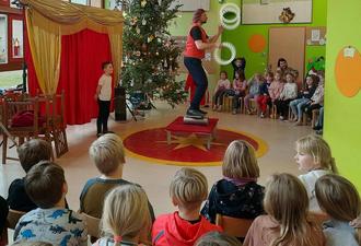 Am 6. Dezember stattete uns in unserem Hort nicht nur der Nikolaus einen Besuch ab und bescherte uns neue Po-Rutscher pünktlich zum ersten richtigen Schnee, sondern auch der Zirkus Hein. Unser Flur verwandelte sich in eine kleine Manege und alle Kinder und Erzieher*innen warteten gespannt auf die Darbietung. Mit tollen artistischen Leistungen, viel Geschick und auch Humor raubten die Künstler uns den Atem, brachten uns zum Staunen und ganz oft zum Lachen. Es wurden Stühle mit dem Kinn balanciert, Reifen mit den Beinen jongliert, Apfelstückchen weggezaubert und viele lustige Witze aufgeführt. Nach der Vorstellung waren die Kinder des Burger Hortes sofort vom Zirkusfieber gepackt und versuchten sich gleich einmal selbst an dem einen oder anderen Trick.