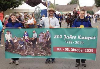 Bereits beim Heimat- und Trachtenfest in Dissen/Dešno waren die Mitglieder des Festkomitees „300 Jahre Burg-Kauper“ gemeinsam mit weiteren Einwohnerinnen und Einwohnern mit einem eigenen Bild im Festumzug dabei, um zum Jubiläumsfest einzuladen.