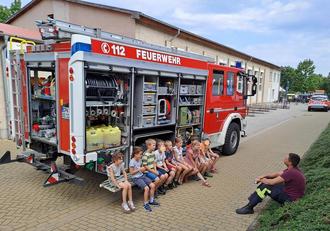 Heiß starteten wir in unsere lang ersehnten Sommerferien. Da war die Beachparty gleich am Anfang zur Abkühlung genau das Richtige. Selbstgebastelte Wasserbomben, eine Schatzsuche im Sandkasten und Geräusche im Zauberwald sorgten für viel gute Laune. Kreativ wurden wir beim Raketen- und Schiffebauen oder Basteln eines Windspiels. Wir knobelten uns durch kniffelige Detektivaufgaben und durch eine Fotorallye im Sagenpark. Am Ende der Ferien besuchte uns sogar die Feuerwehr, die uns die Uniform anziehen ließ und eine kleine Löschübung mit uns durchführte.
