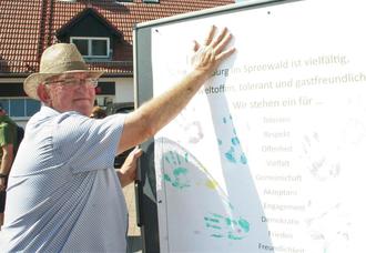 Auch Bürgermeister Hans-Jürgen Dreger setzte mit seinem Handabdruck ein Zeichen für Vielfalt und Toleranz.