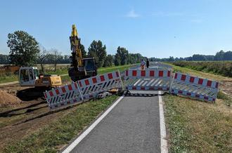 Der Spreeradweg zwischen den Spreebrücken Fehrow/Prjawoz und Schmogrow/Smogrojow musste gesperrt werden, nachdem Unbekannte diesen Anfang September mit einem Bagger zerstört hatten. Auf einer Länge von ca. zehn Metern rissen sie die Asphaltdecke auf und fuhren den Bagger anschließend in die Spree.